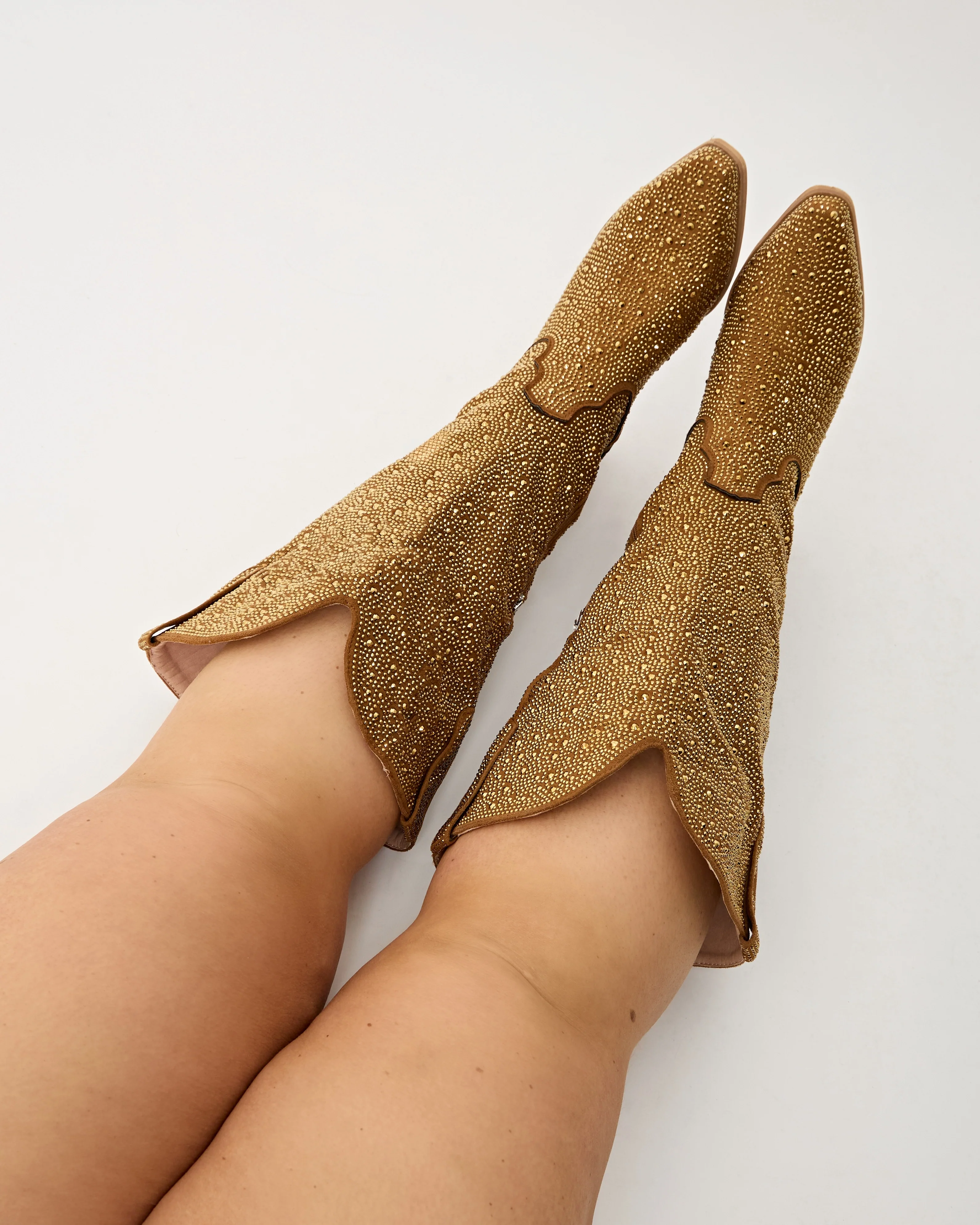 Guaranteed compliments in these bronzed beauties. Perfect for concerts, festivals and sparkling up any outfit. With a comfy low heel. P.S. Take a photo of these with the flash on to see them sparkle!