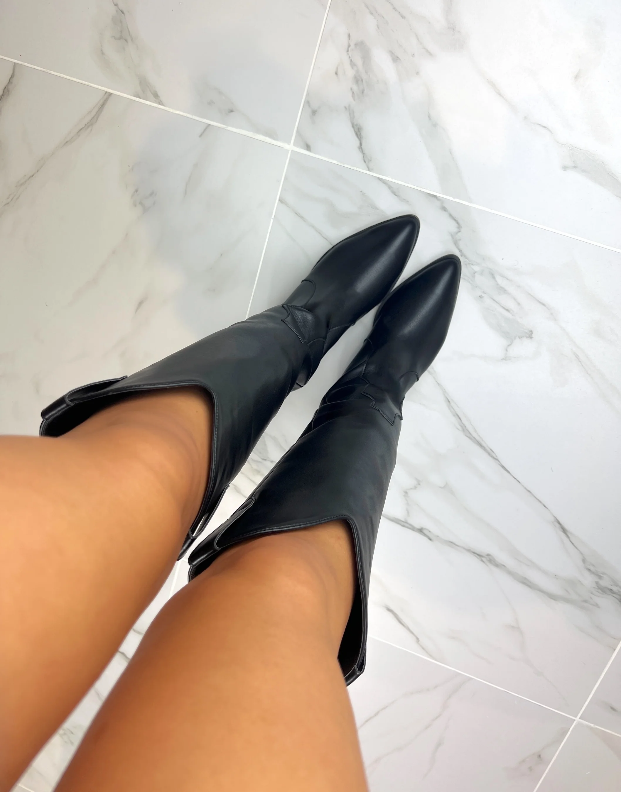 A chic minimal boot with a hint of western. Perfect for everyday. Light weight with soft faux vegan leather.